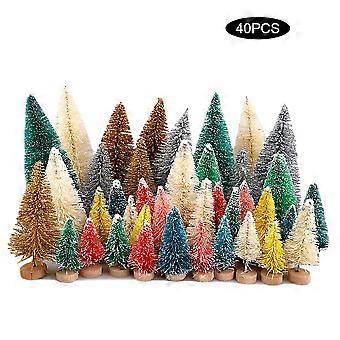 40pcs Mini Colorful Cedar Trees Kit Sisal Snow Frost Trees With Wood Base Party Desktop Decoration Props-yky