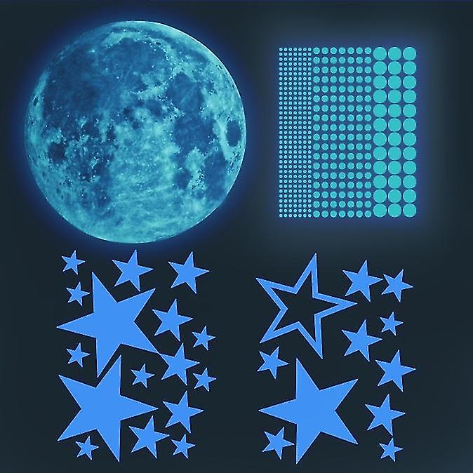 Glow-in-the-dark stickers, 2 glowing stars, 1 dot, 1 glowing moon, made of eco-friendly PVC The glow-in-the-dark stickers are made of a special fluorescent luminescent material, which absorbs light for several hours under sunlight or lights, and emits bright, decent light for up to 8+ hours. Luminescent stickers are easy to apply and remove, adhere great to almost any surface smooth and the walls are not easily damaged Not only is it perfect for a baby or child's room, but it can also be used as a useful warning sign at night, such as on light switches, door handles, door frames or on the floor. The moon and stars wall decal is ideal for bedroom decoration and a great gift idea to create the perfect starry sky