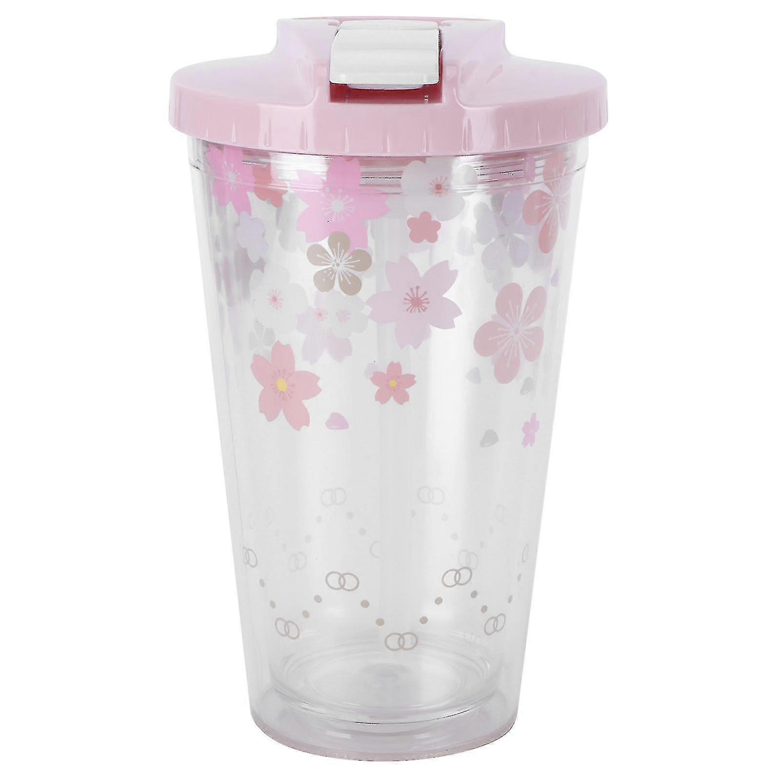 450ml Pink Flower Double Layer Portable Water Cup With Straw For Home And Office Use