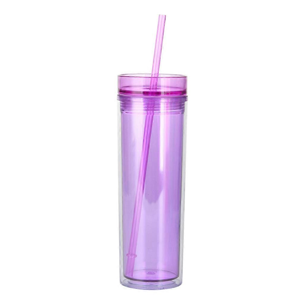 450ml transparent double-layer straw cup, color straight cup, double-layer water cup with straw