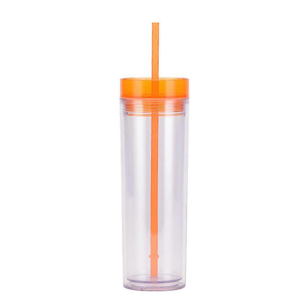 450ml transparent double-layer straw cup with colored lid, double-layer water cup with straw