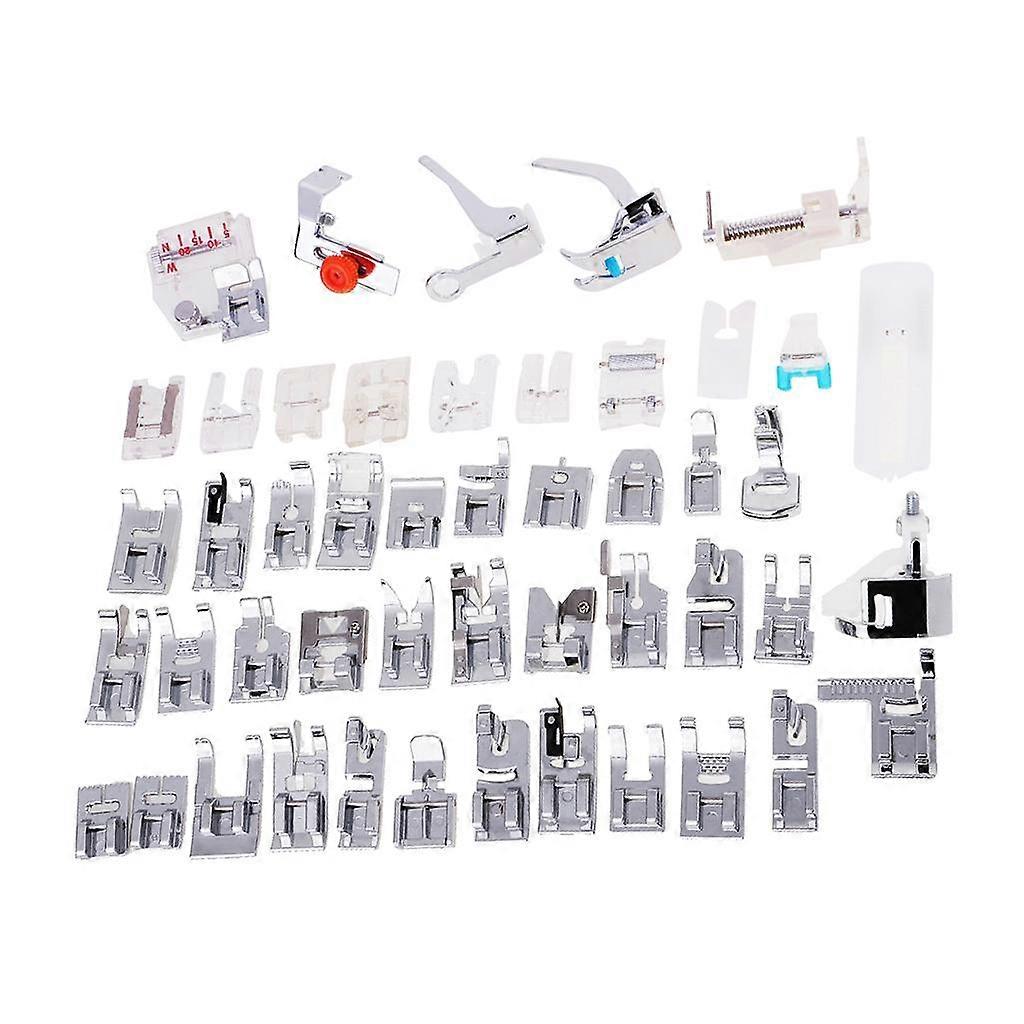 Description: 48 Pieces special dedicated function pressure foot can be competent for a variety of sewing needs. Compact Kit, brand new and high quality, very functional. Fits for most brands sewing domestic machines. Used as fashion accent on blouses and dresses, as border for sheer curtains, or as a flounce for bedspreads, skirts, etc. Crafted with durable hard metal, will last for long term use. Specification: Material: Metal Color: As the picture show Size: Assorted Package Includes: 48 Pieces Presser Feet Set