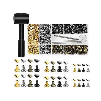 480 Sets Leather Rivets, Double Cap Rivets Tubular 4 Colors 3 Sizes Metal Studs With Fixing Tools F