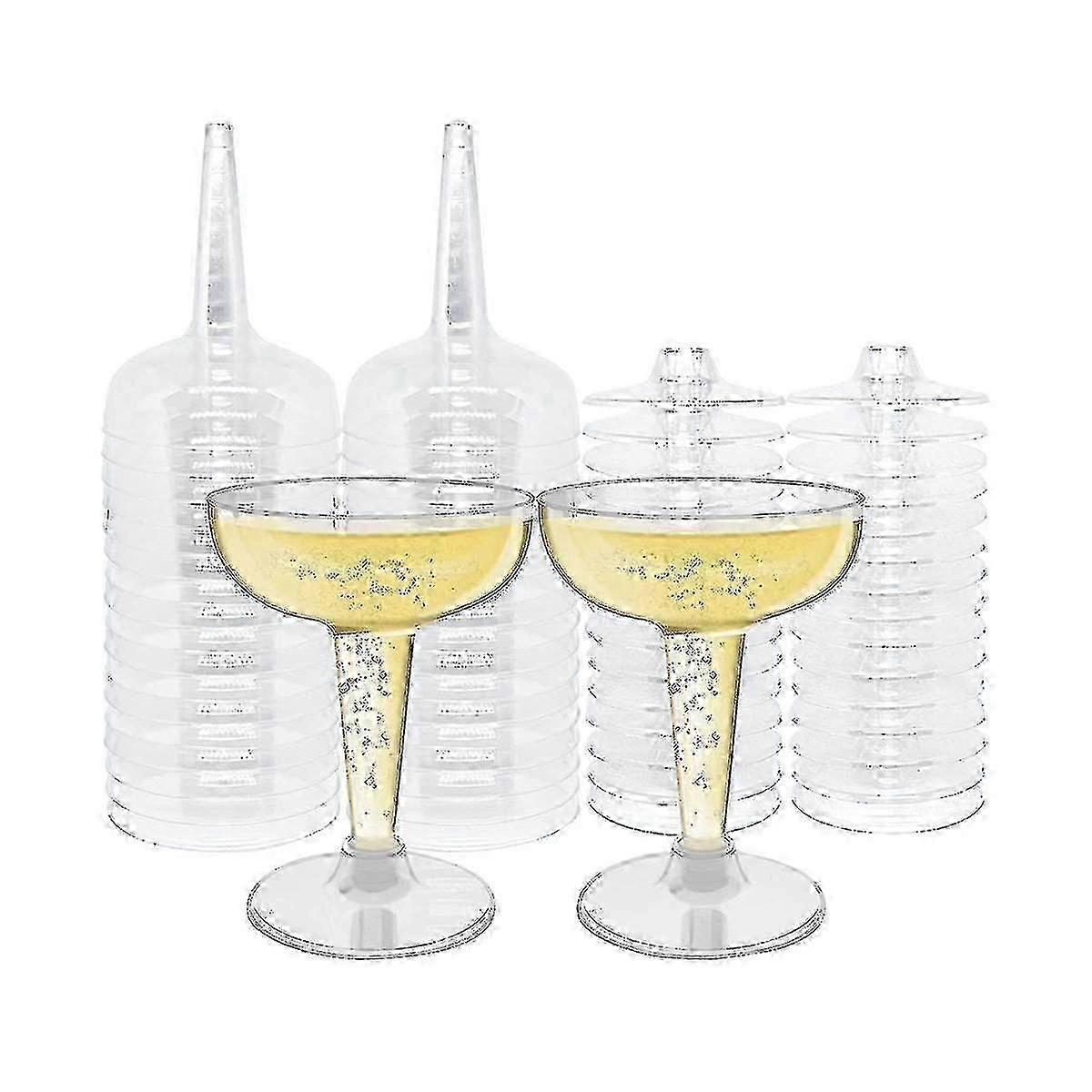4oz Disposable Plastic Martini Glasses, 50 Pack Clear Stemmed Goblets for Parties Stackable Cocktail Cups