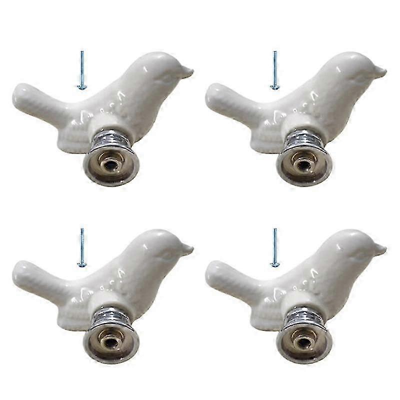 4pack Green Cute Bird Design Cabinet Door Knobs, Ceramic Drawer Knobs , Vintage Cupboard Pull Handle (white)