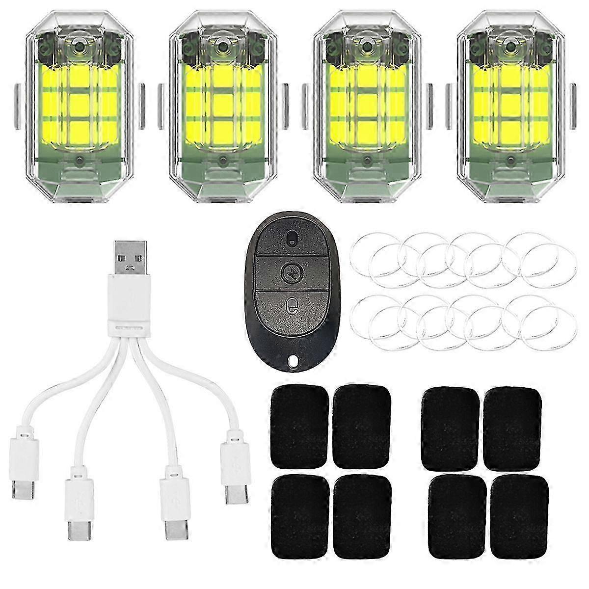 4pcs Aircraft Strobe Lamp Micro-usb Charging M3 Turn Signal Indicator Waterproof 3.7v 350mah High Brightness