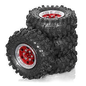 4pcs Beadlock Wheel Tire Set for 1/18 1/24 RC Crawler Car Part Red