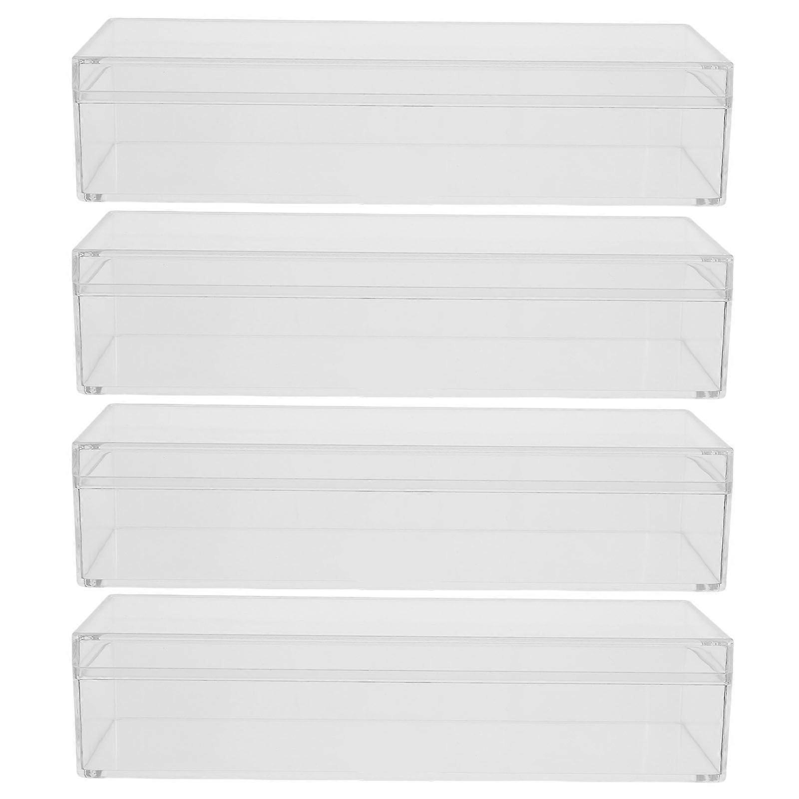 4PCS Clear Small Plastic Case - Transparent Containers - Rectangular Small Storage Box with Lid Rectangle Organizer Box for Beads 15.5x6.2x3.8cm