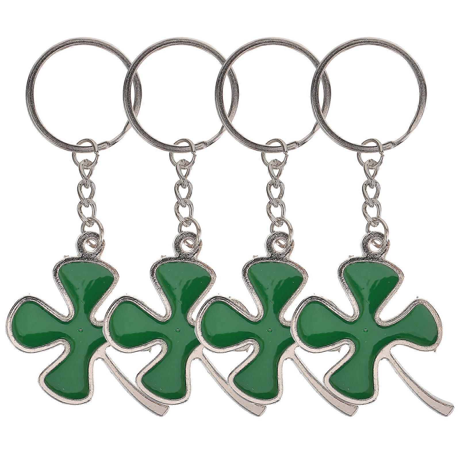 4pcs Creative Clover Keychain Metal Key Rings Practical Pendant for St. Patrick's Day