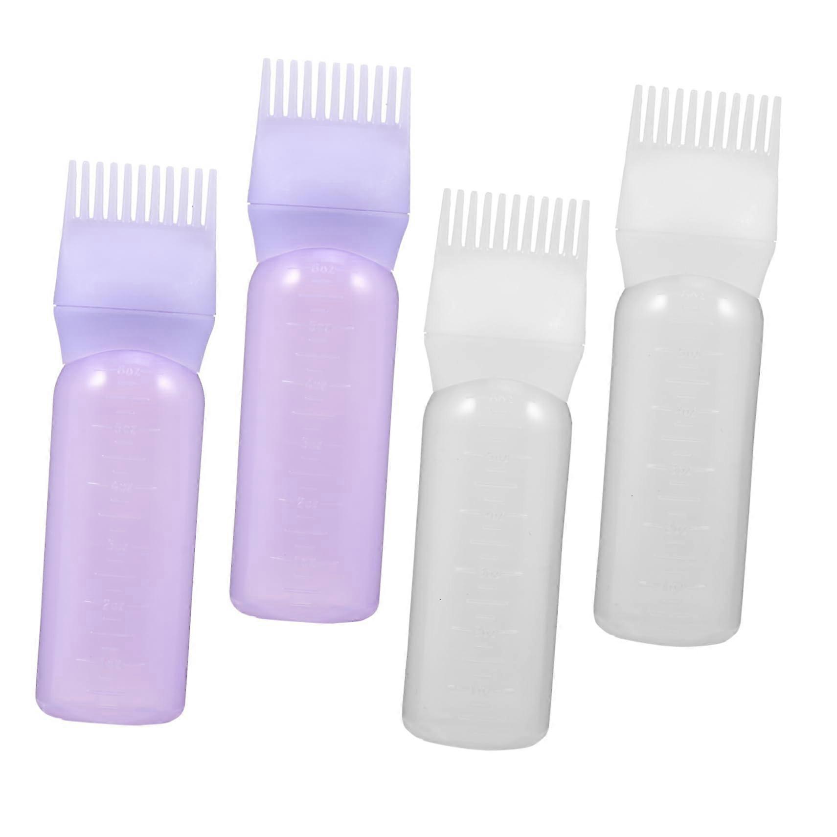 4pcs Hair Dye Alicator Brush Bottle Set Plastic Root Comb Applicator Bottles for Home Salon Use Marked Scale for Precise Application