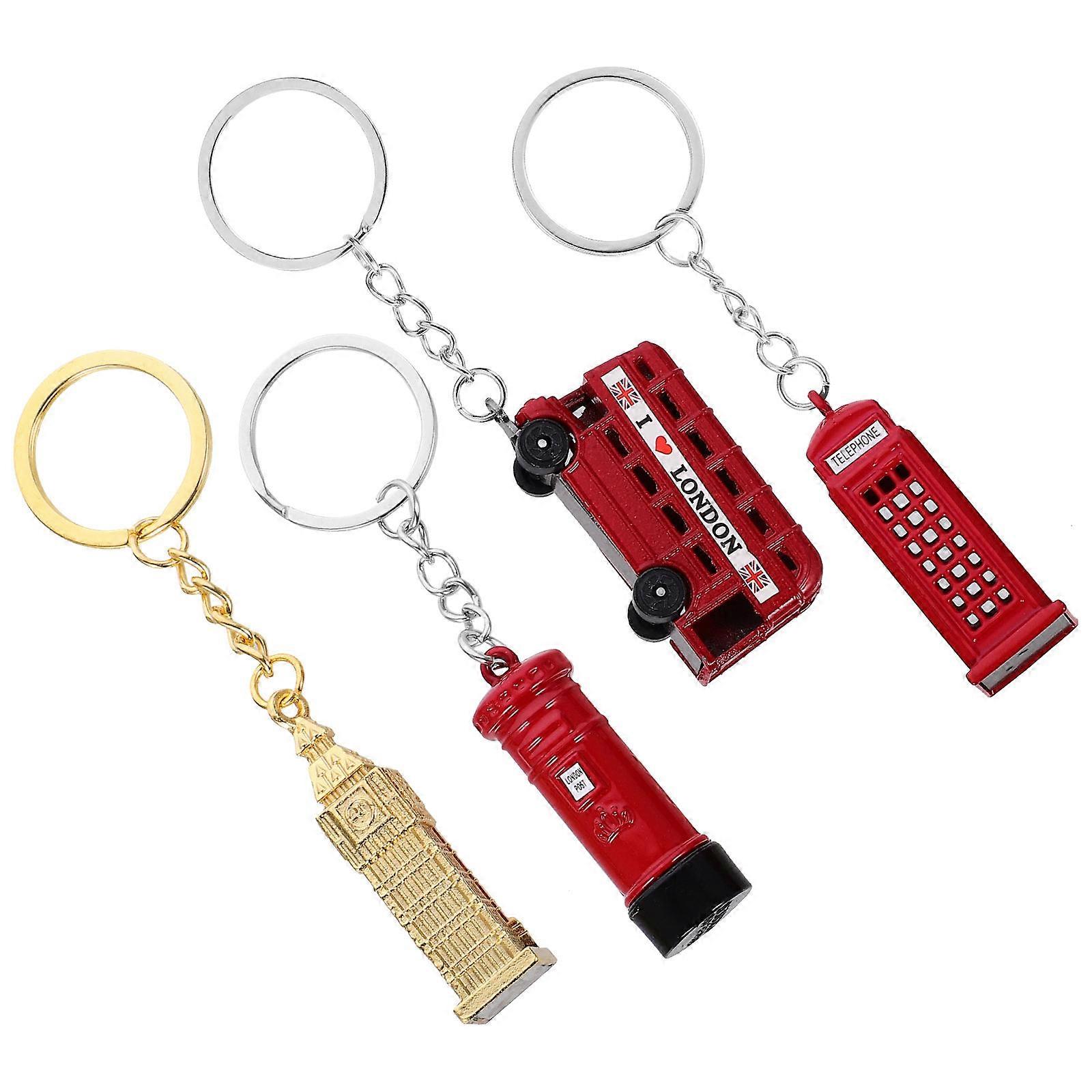 4pcs London Theme Key Chain Set Bus Big Ben Keyring Souvenirs Keychain Telephone Booth Postbox Key Holder Set