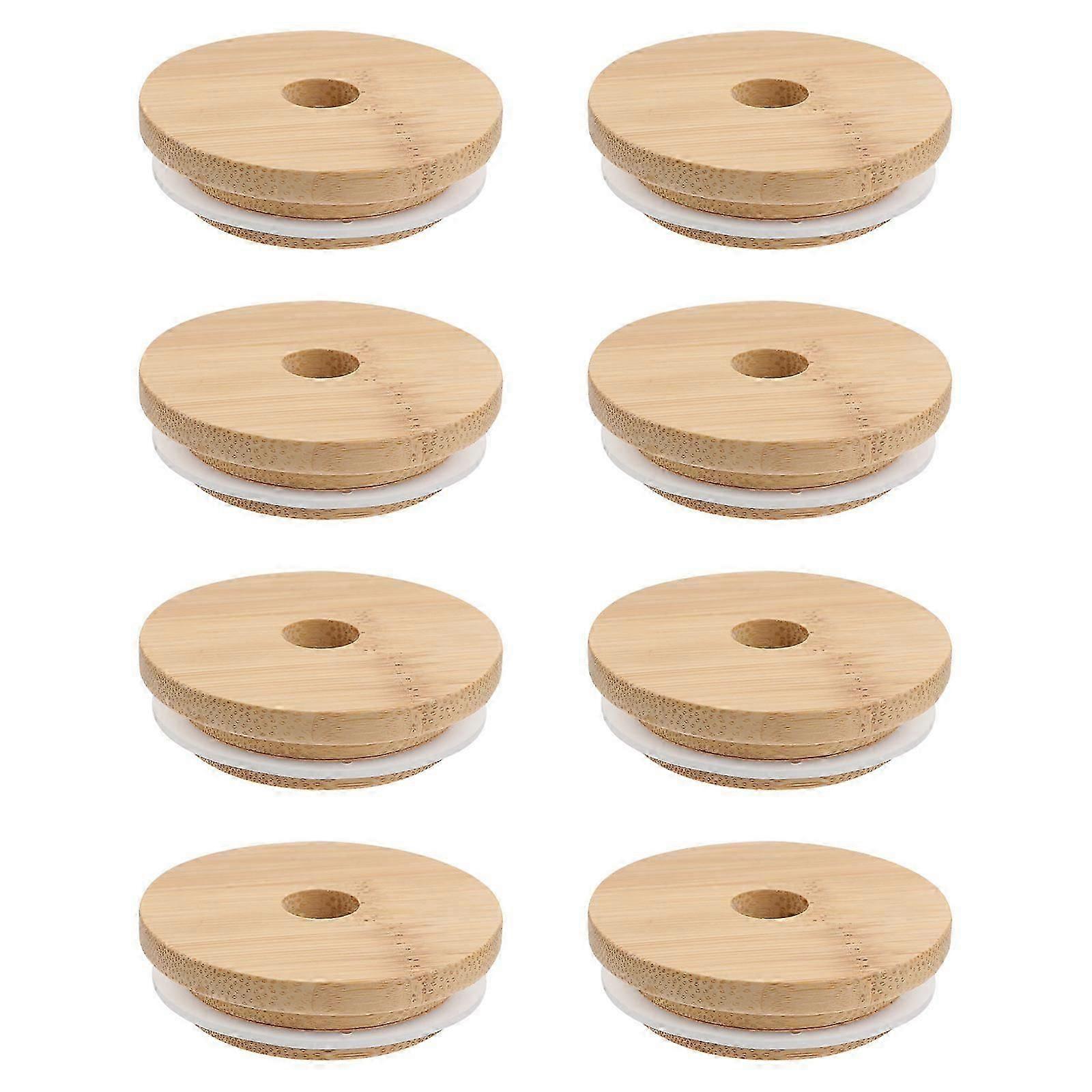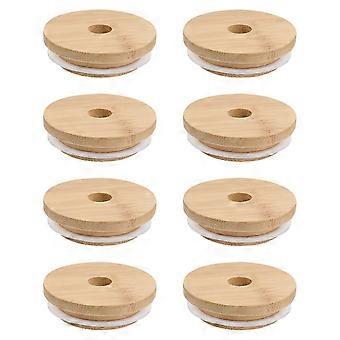 4pcs Mason Jar Lids with Straw Hole Reusable Bamboo Lids for Beer Can Glass