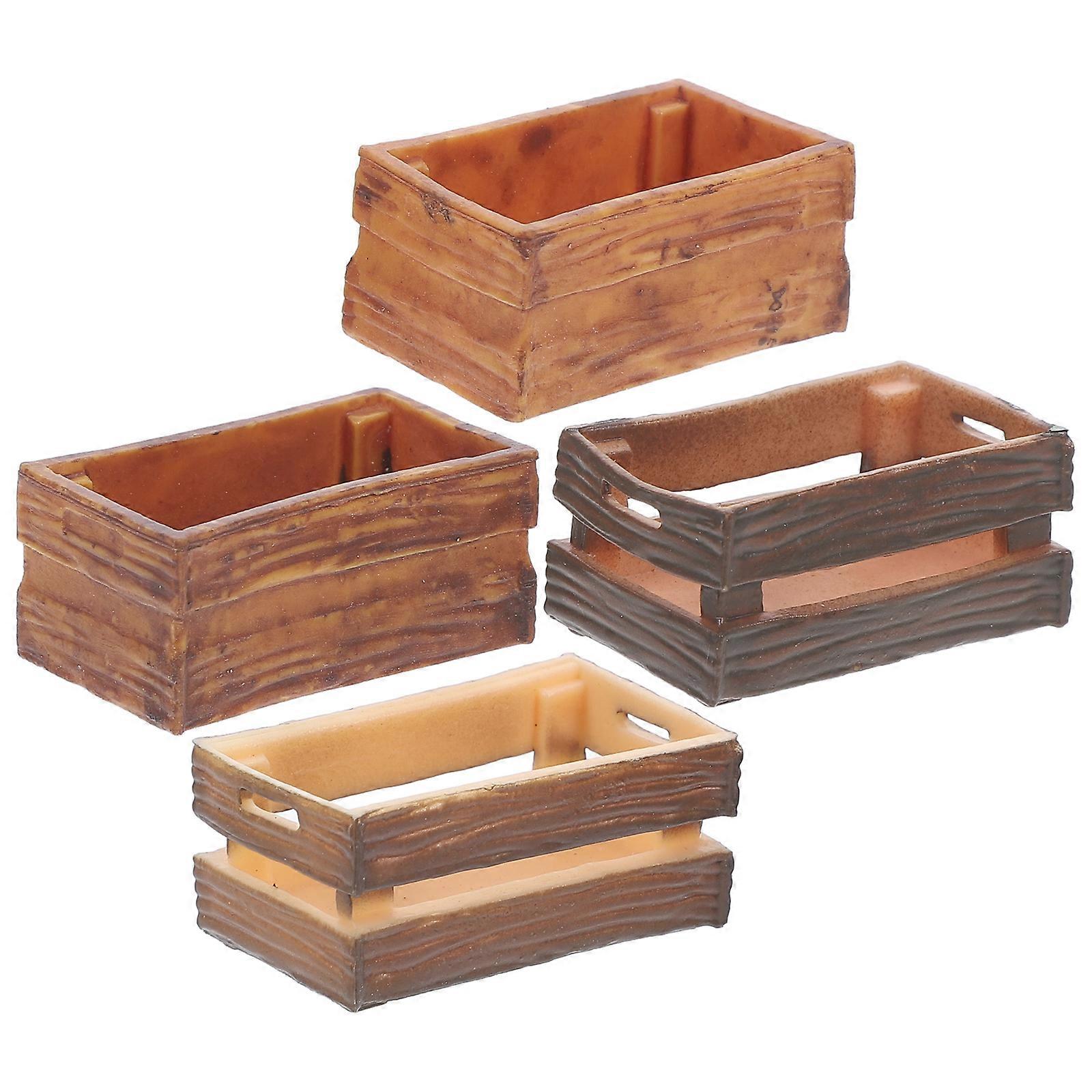 4pcs Mini House Crates Miniature Crates Tiny House Decorations Pretend Play Supplies