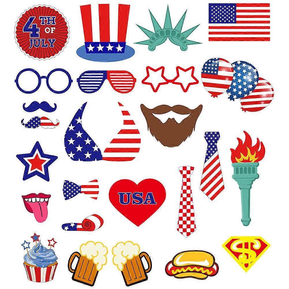 4th of July Photo Props Photo Booth Props for Party 25Pcs Kit