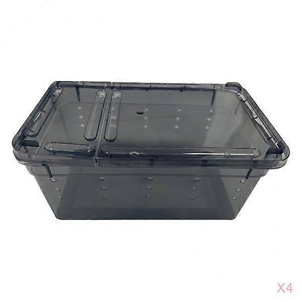 4x Plastic Reptile Breeding Box Spider Feeding Hatching Tank Black