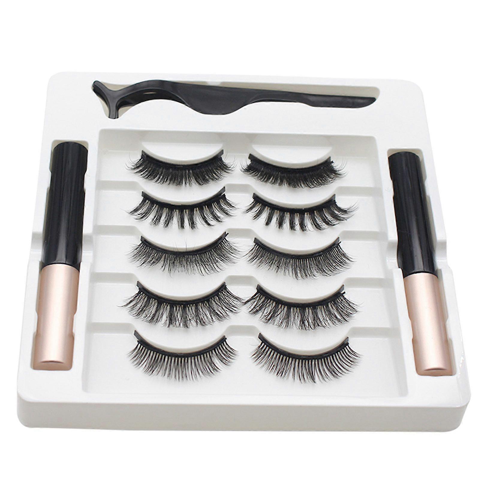 5 Pairs Magnetic Eyelashes + 2 Waterproof Liquid Eyeliners + Tweezers False Eyelashes Extension Set