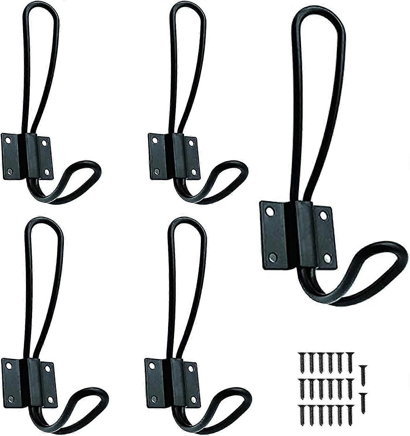 5-Piece Vintage-Style Black Wall-Mounted Coat Hooks with Metal Screws - Durable and Easy to Install Double Hooks for Rustic Entryways