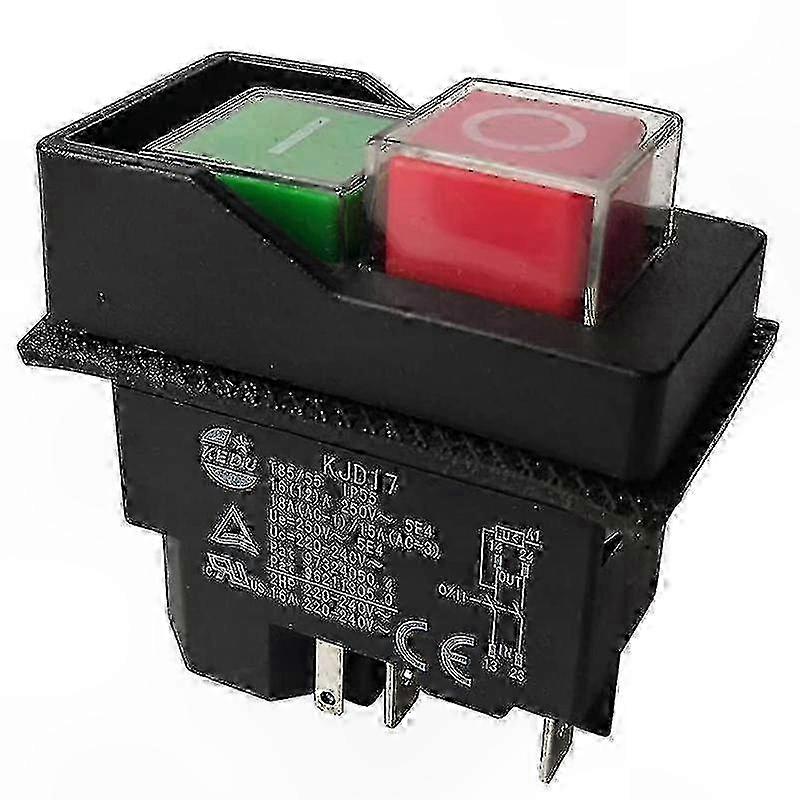 Electromagnetic Pushbutton Switch for Garden Tools – KJD17 220V 5 Pin Terminals This switch features power outage and undervoltage protection with bipolar and unipolar cutoff functions. Both versions can be used with overload protection switches to provide undervoltage and overload protection. Commonly used in machine tools, high-power tools, and garden machinery. This is a safety switch; after an accidental power loss, the device will not restart automatically. To restart, press the green start button. Type: AC220V KJD17 5 Pin Color: Black Material: Plastic Package Contents: 1 x Electromagnetic Pushbutton Switch Note: The package includes only the items listed above. Other products are not included. Lighting and display settings may cause slight variations in color between the image and the actual item. Measurement error allowed within +/- 1-3 cm.