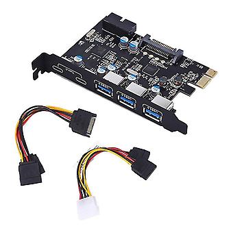 5-port Usb3.0 Type-c Pcie Pci-e Expansion Card Adapter Typea Extender Card