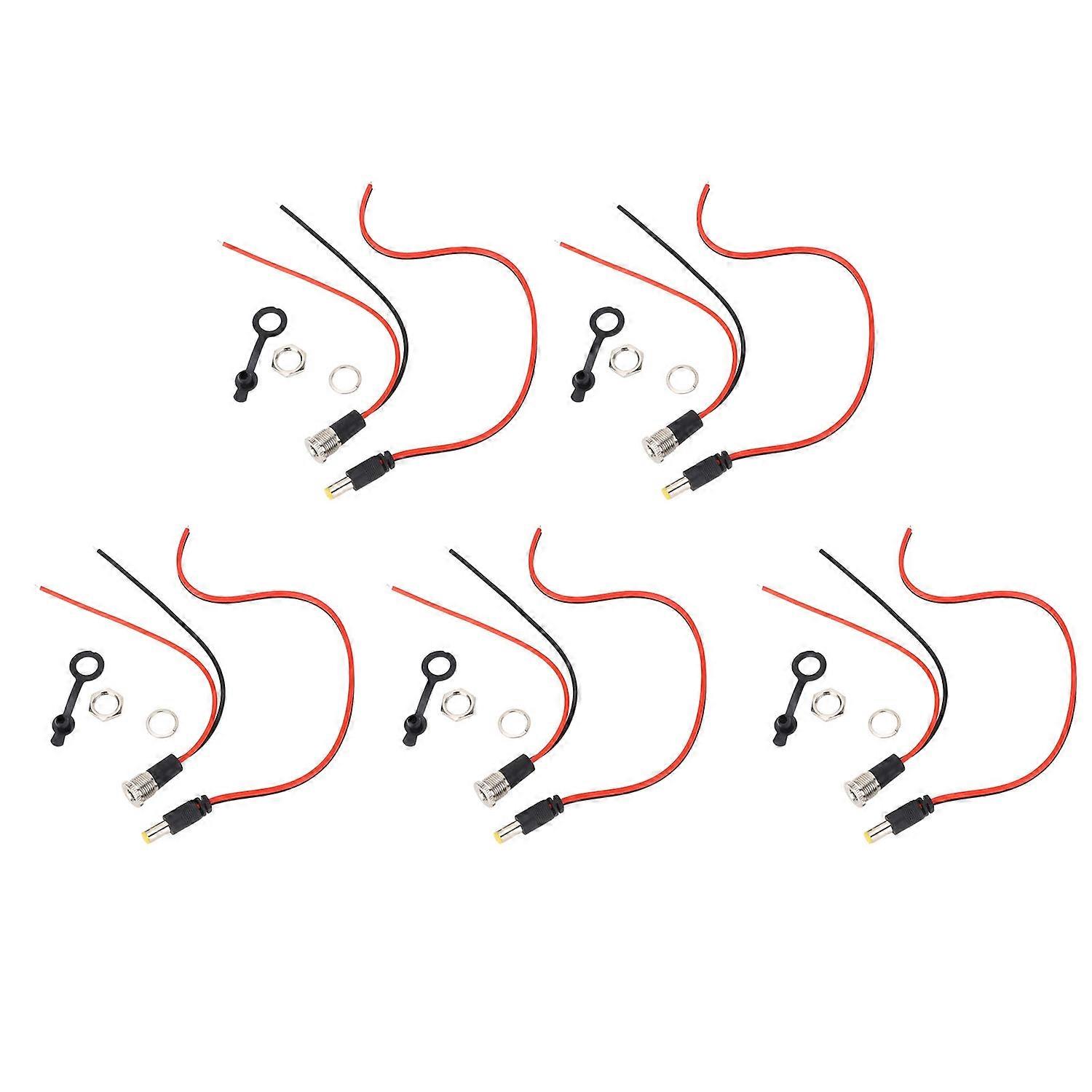 5 Sets 5.5x2.1mm 10A Power Jack Cord Socket Threaded Female Mount Connector Wire Adapter with Waterp