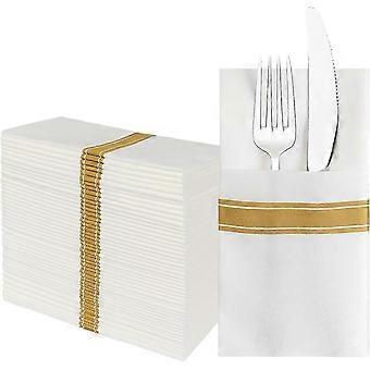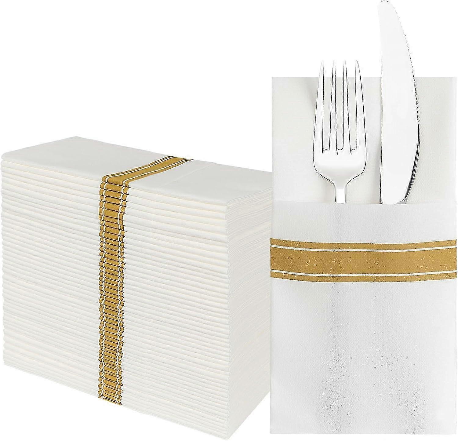 50-Count Disposable Napkins with Integrated Cutlery Pouch for Wedding Events White Linen Texture Pre-Folded Napkins with Built-in Cutlery
