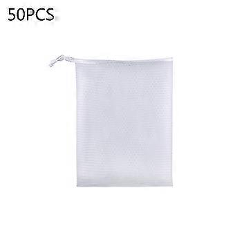 50Pcs Double Layer Exfoliating Mesh Soap Saver Pouch Bubble Foam Net Handmade Soap Mesh Bag Body for Facial Cleaning Tool White