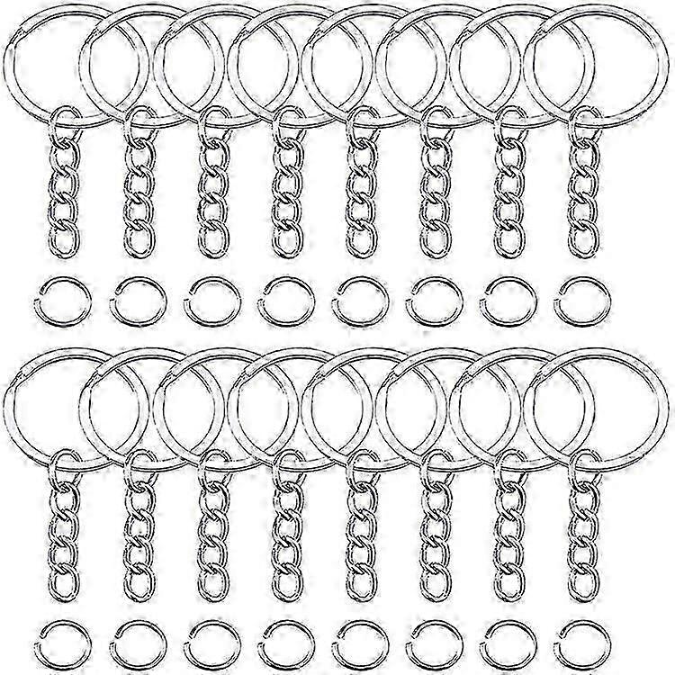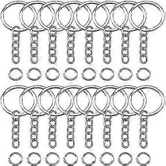 PACKAGE CONTENT: 50 x key rings with chain + 50 x open jump rings. . DIMENSION: Key ring diameter: 25 mm /30mm, Open jump ring diameter: 8 mm/0.31inch. . MATERIAL: Made of nickel plated metal, not easy to fade and rust, strong and durable. With glossy surface and good texture, this key ring can match well with your keys. . EASY TO USE: The keychain rings are convenient to connect keys, clasps, charms, links and other ornaments. Easy to use and convenient to carry. . WIDE APPLICATION: Key rings can collect your door keys, garage keys, car keys, hang cards, DIY accessories (trinkets, beads, tiny dolls, toy models, mini cubes or tags), also can used for making arts and crafts project.