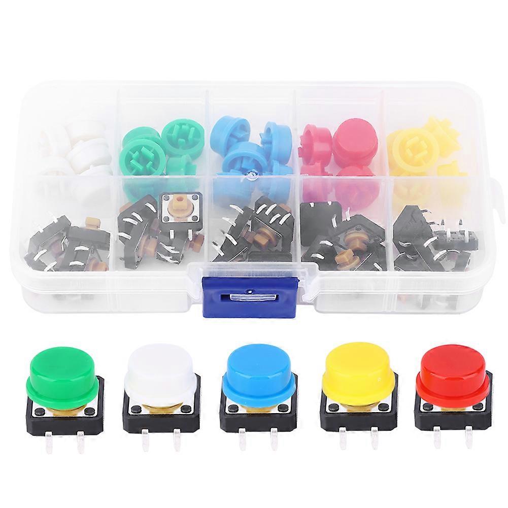 50Pcs Tactile Push Button Switch High Quality 5-Colors Round Tact Cap Set 50mA 12VDC
