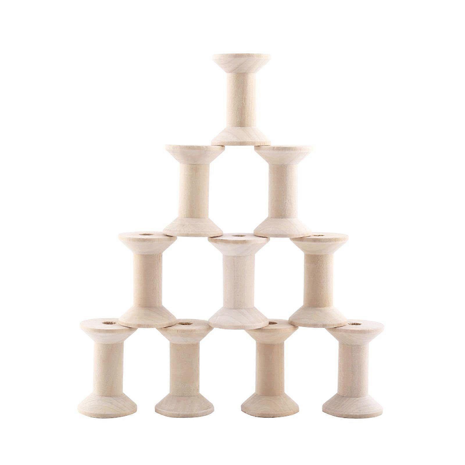 50pcs Wooden Spools for Crafts: Barrel Empty Thread Bulk Wood Ribbon Spools for DIY Arts Textile Wire Weaving Wood Projects