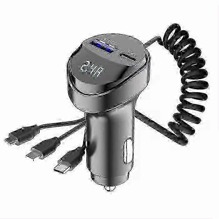 55W Fast Charging 3-in-1 Car Bluetooth 5.0 FM Transmitter with Retractable Cable, Voltmeter & 3.1A USB Type C Charger
