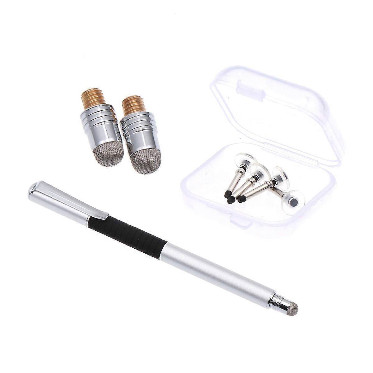 5pcs 2-in-1 Capacitive Stylus Set with Replacement Tips Double-End Touch Pen Handwriting Capacitive Pens Silver