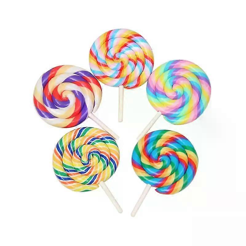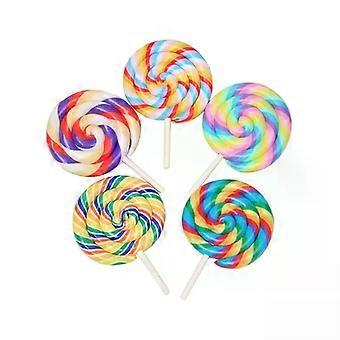 5PCS Clay Lollipops Craft Large Lollipop Props Simulation Lollipop Swirl Lollipop Suckers Party Favors Colorful Lollipop Charm