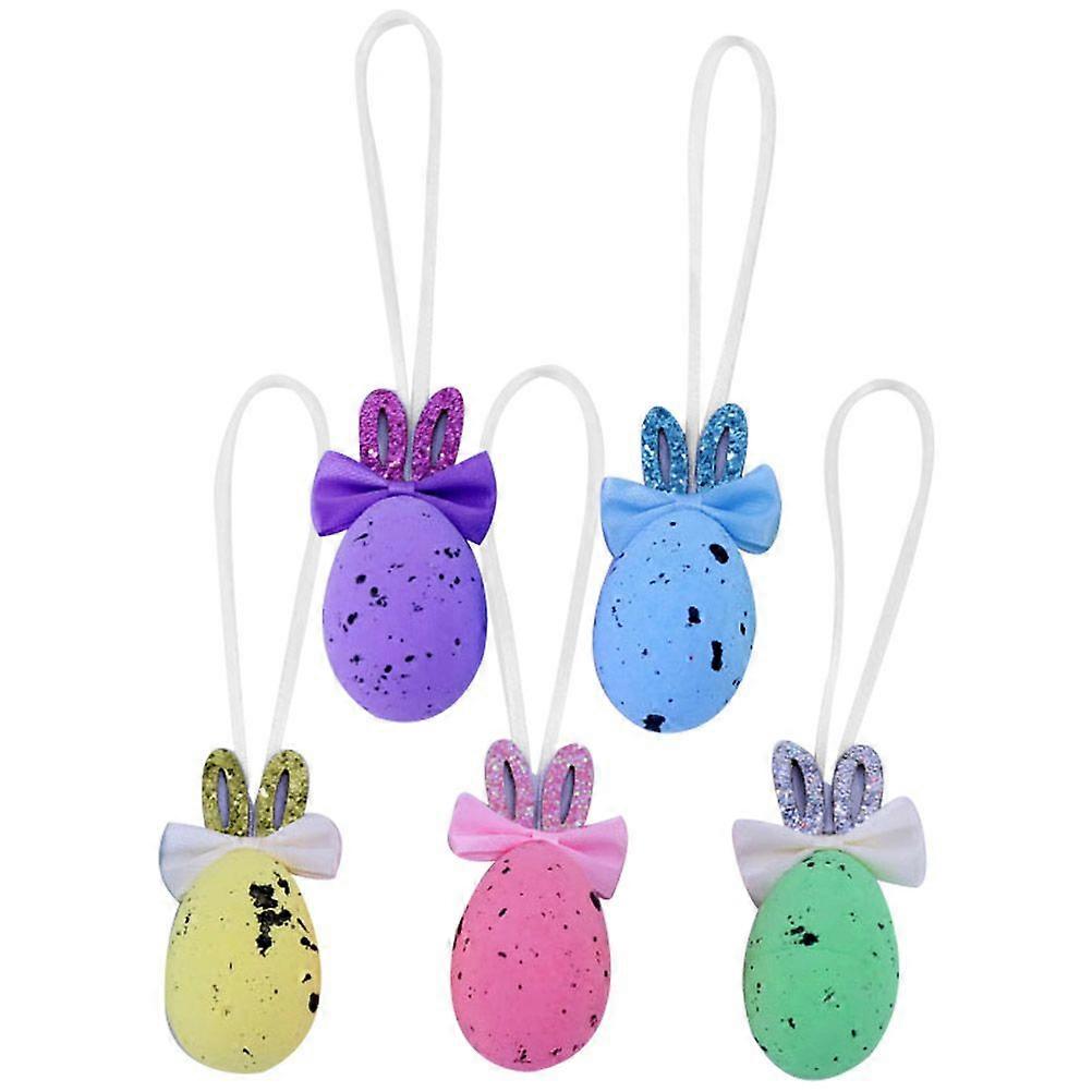 5pcs Easter Eggs Hanging Ornaments Easter Egg Pendant With Bunny Ear Decor Easter Tree Hanging Ornament