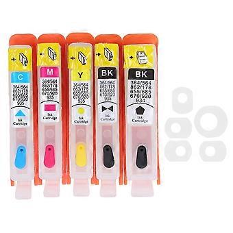 5PCS Ink Cartridge Set BK C M Y Smooth Ink Output Cartridge Combo Pack with Permanent Chip for Replacement for HP 364