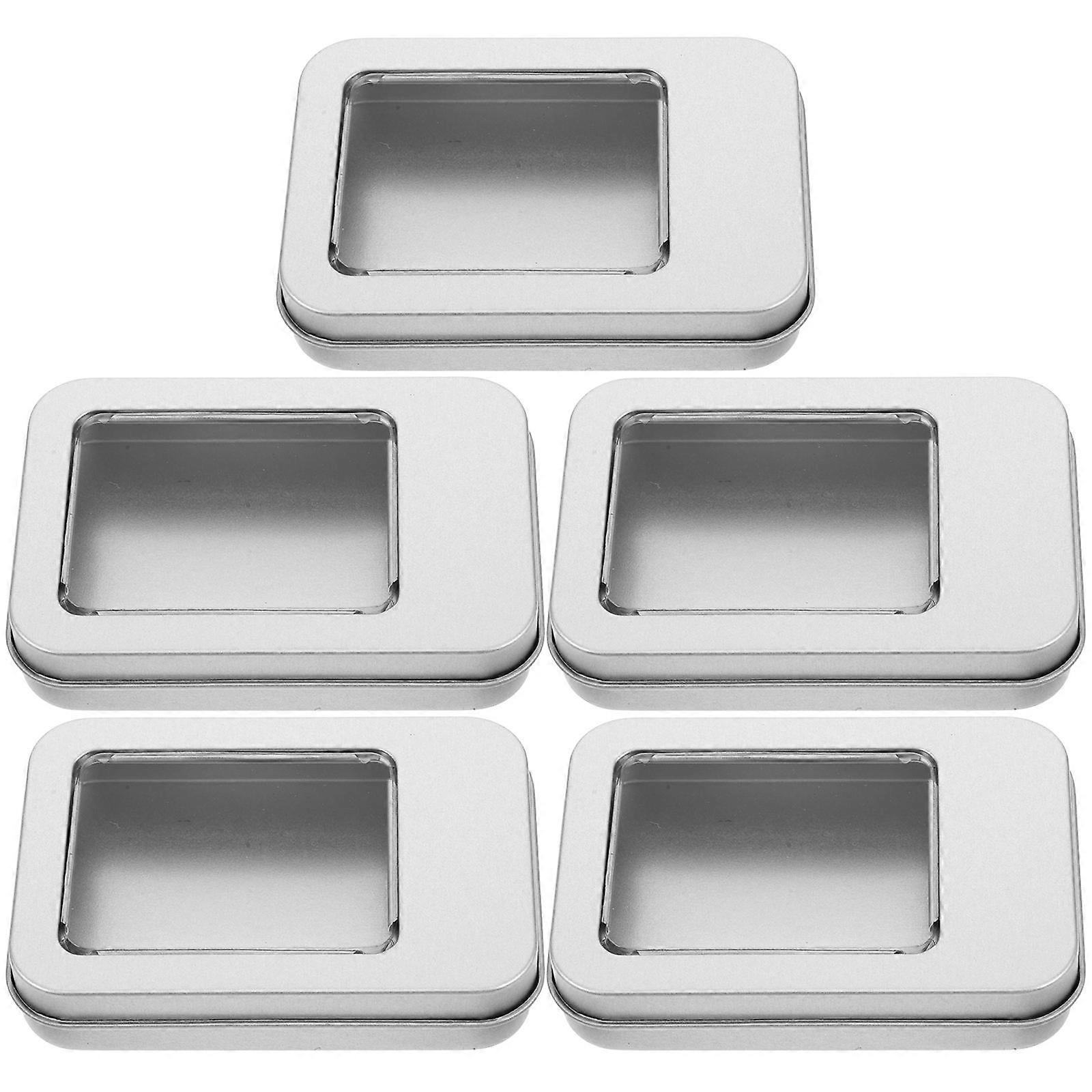 5pcs Metal Tin Box Empty Rectangular Storage Organizer Tins with Clear Window Hinged Lids for Small Items and Craft Projects
