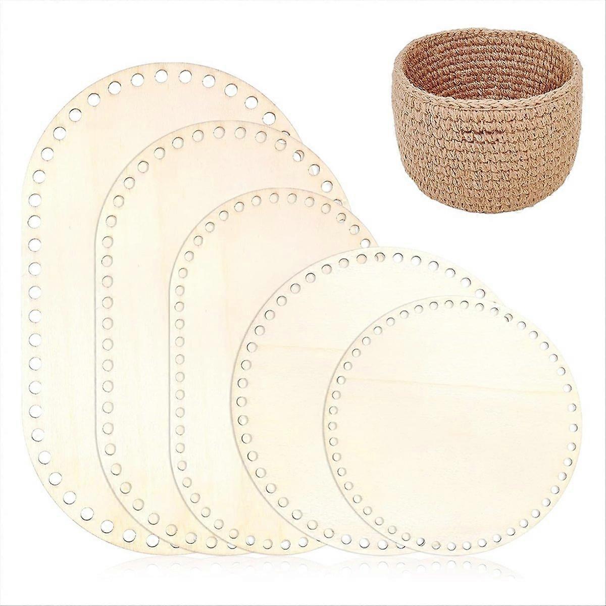 5PCS Wooden Basket Bottom, 5 Size Oval Circle Blank Solid Crochet