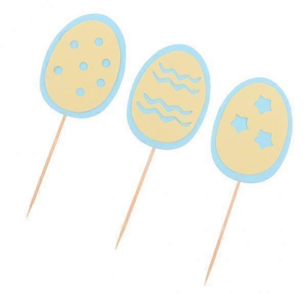 5x 3pcs/set Happy Easter Eggs Cupcake Picks Easter Decor Blue