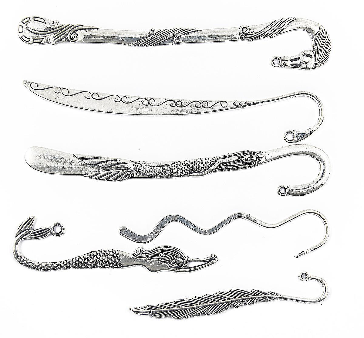 6 assorted styles Antique Silver BookMark With Loop For Jewelry Making Craft
