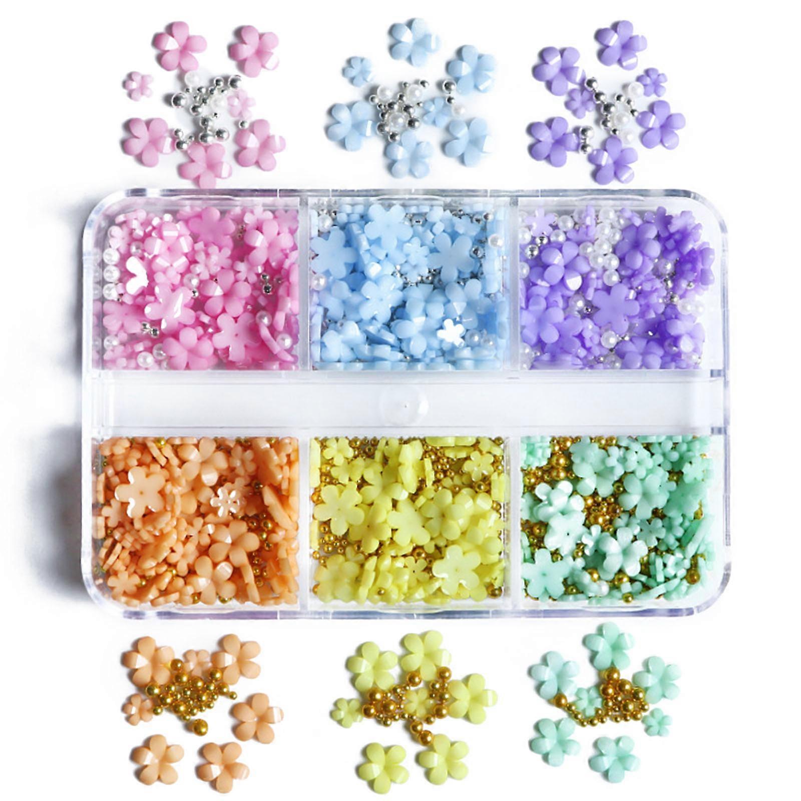 6-compartment Box Size Mixed Resin Flower Accessories Set with Gold Silver Bead