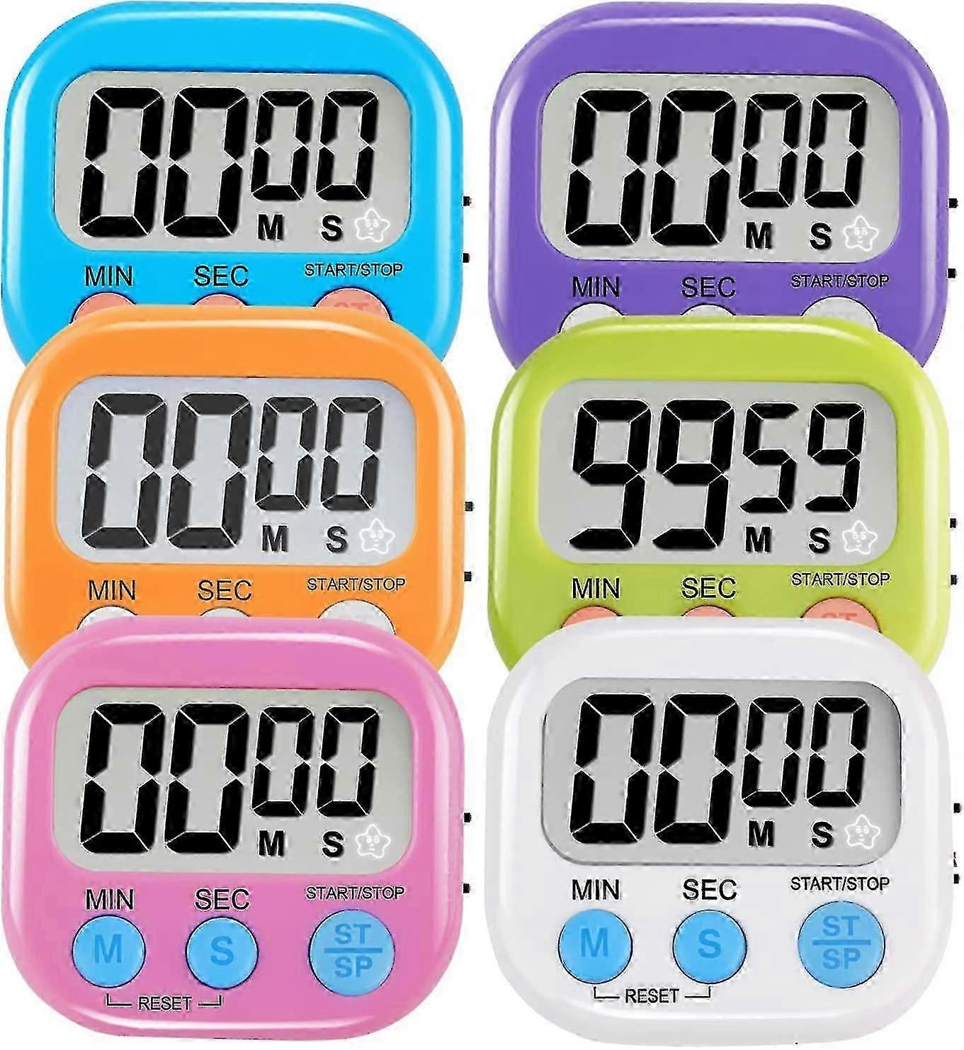 6 Pack Multi-function Electronic Timer - Magnetic Digital Timers Big Lcd Display The Loud / Silent Switch Countdown Timer Extensively Use In Break Tim