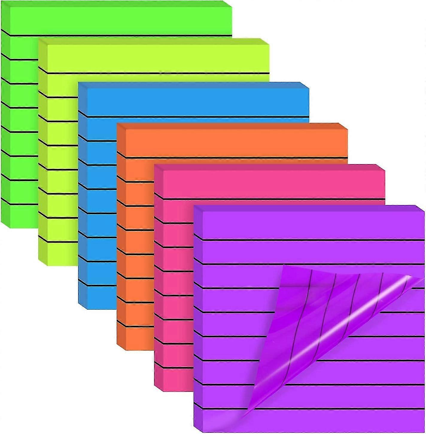 Package IncludesYou will receive 6 packs (300 sheets) clear sticky notes with lines, one each in red, blue, purple, green, orange and yellow. Bright colors, especially suitable for use in book notes, reminders, messages, etc. Appropriate SizeThe size of this transparent sticky note is 7.5*7.5 cm/3*3 inches, it is the right size, it will not take up too much space, you can carry it in your pocket or bag, and it is convenient to mark or remind to view important information. High QualityThis self-adhesive sticky note is made of high-quality PET material, which is eco-friendly, non-bleeding, smooth surface, smooth writing, waterproof and not easy to break. Transparent Line DesignThis sticky note with lines has a transparent design, and it is easy to see the original text when it is attached to the book, which is helpful for key points. The design of the lines can also help you to write more smoothly and neatly. Widely UsedThis self-adhesive translucent notes pads is suitable for schools, libraries, offices, homes and other places, it is a good choice for studying, reading, and reminders of important things.