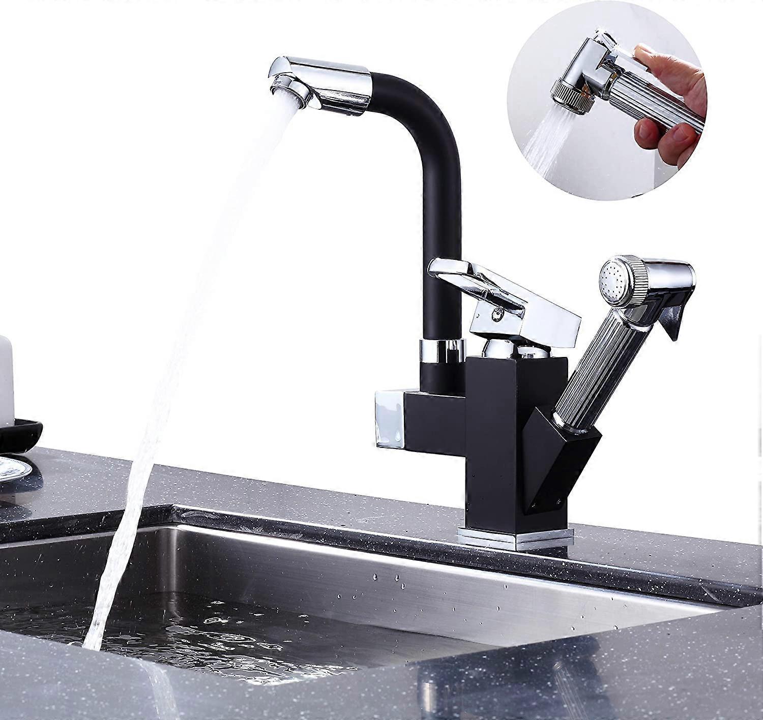 6 PackAIBOOSTPRO LED Kitchen Sink Mixer Tap, Pull Down Spray 360 Degree Rotation Spout, with 3-Colour Temperature Display, Black Hose Single Handle Co