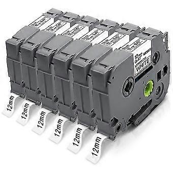 6 Pcs 12mm 0.47 White Tape Black Ribbon on White Background Printer Label Tape Compatible with Brot