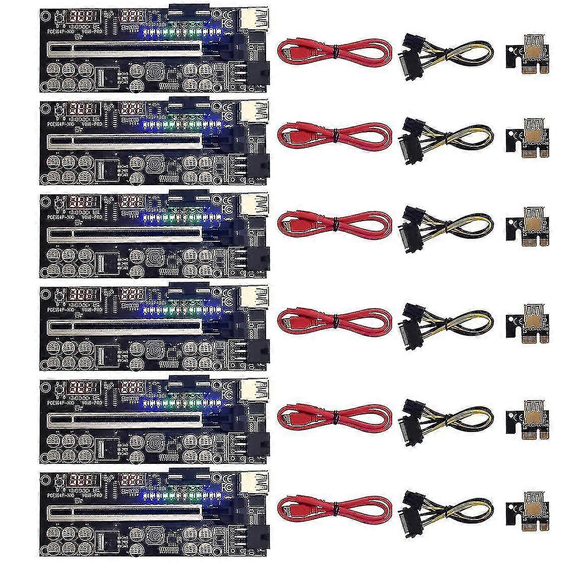 6 Pcs New Ver018 Pro Pci-e 1x To 16x Gpu Extension Cable Riser Card With Led Lights/voltage/tempera