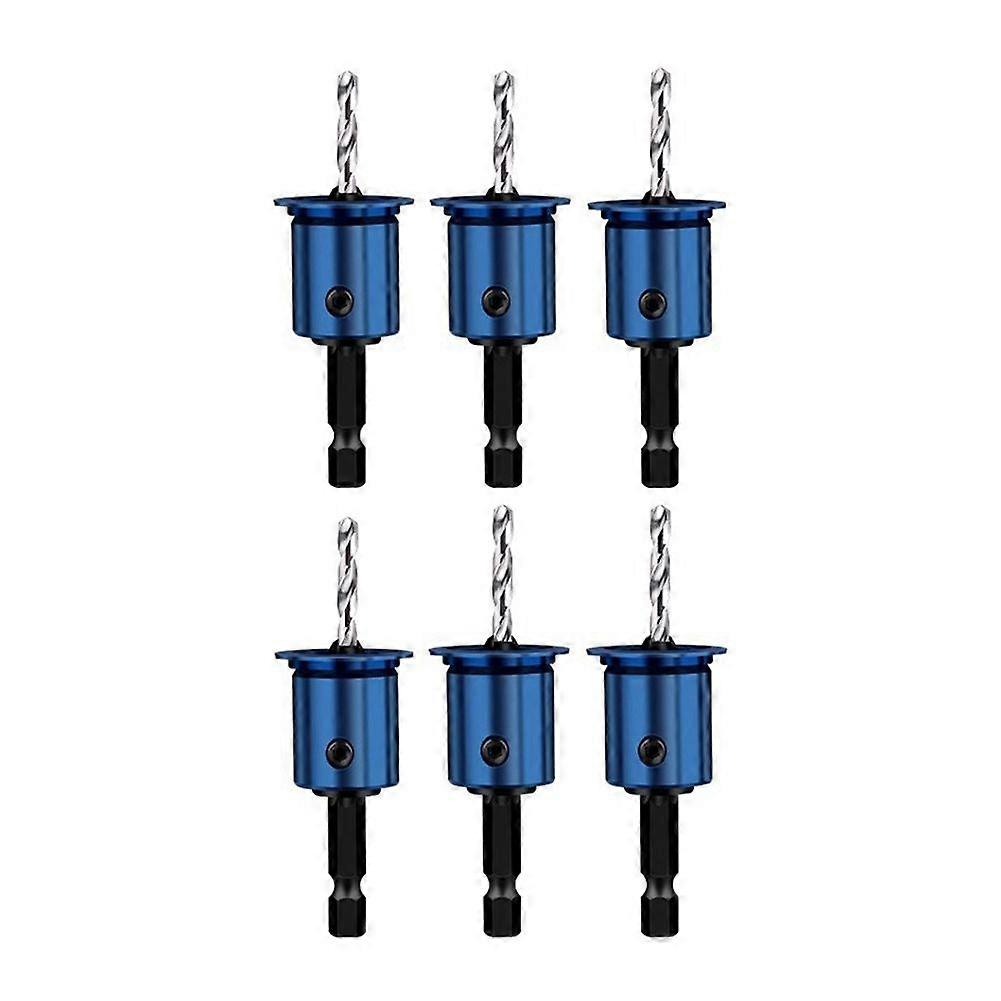 6-Piece Set of 10mm Hexagonal Shank Woodworking Countersink Drill Bit Set 2-In-1 Limited Hole Opene
