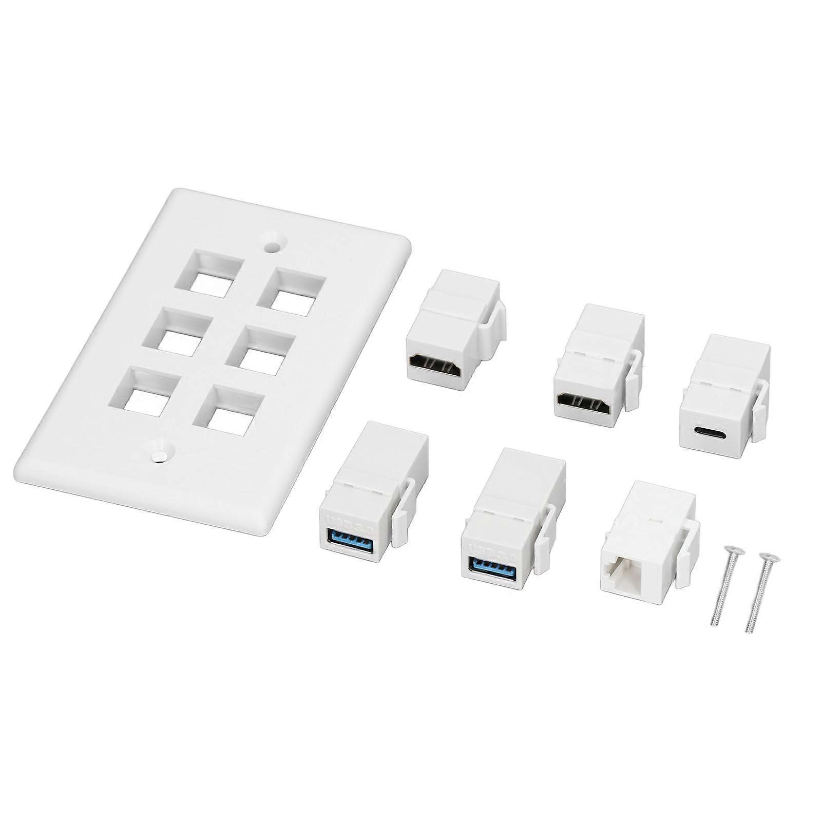 6 Port Wall Plate 2xHD Multimedia Interface 2xUSB3.0 1xType C 1xCat6 Ethernet Wall Plate for TV Projector Computer