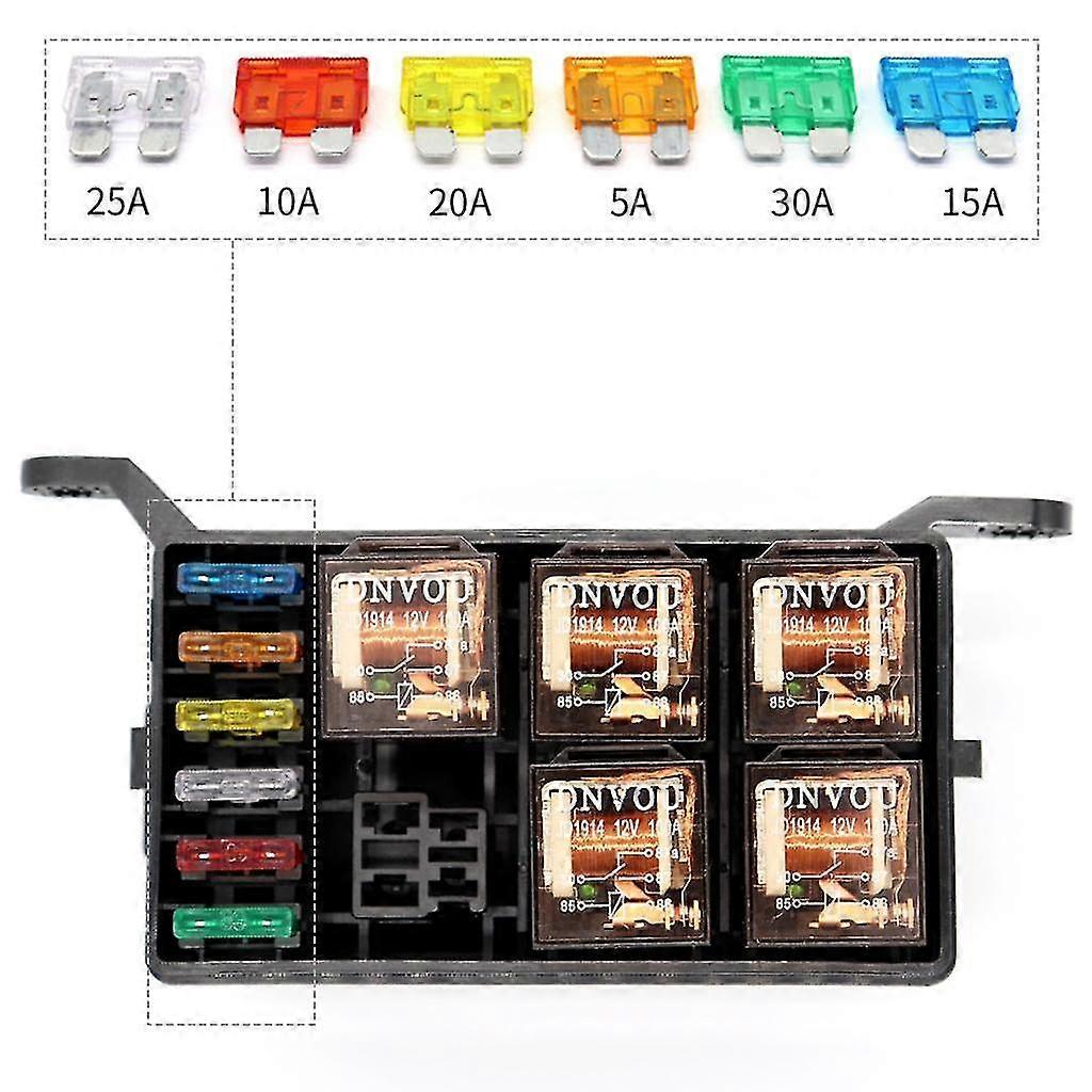 6 Way Fuse Relay Holder For Terminals+4pin 40a Relay+5pcs 5pin 100a Relays