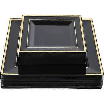 60 Pack Black Square Plastic Plates with Gold Rim, Elegant Tableware for Parties and Events-2025