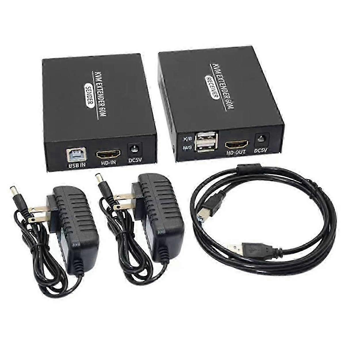 60M -Compatible KVM Extender -Compatible USB KVM Ethernet Extender Transmitter Receiver US Plug