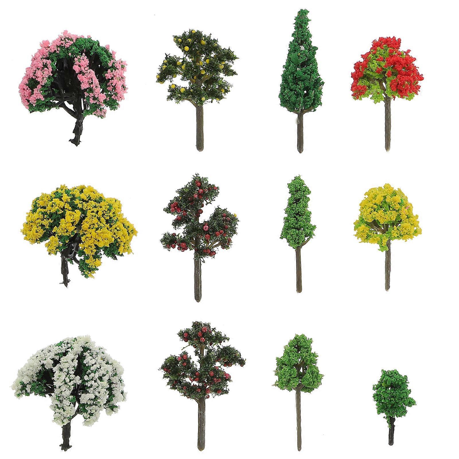 60pcs Mini Tree Models Decor Plastic Tree Figurines Micro Landscaping Props